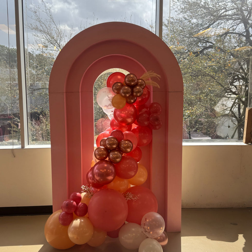 Large balloon arch, backdrop, and digital photo booth for a bold, show-stopping display.